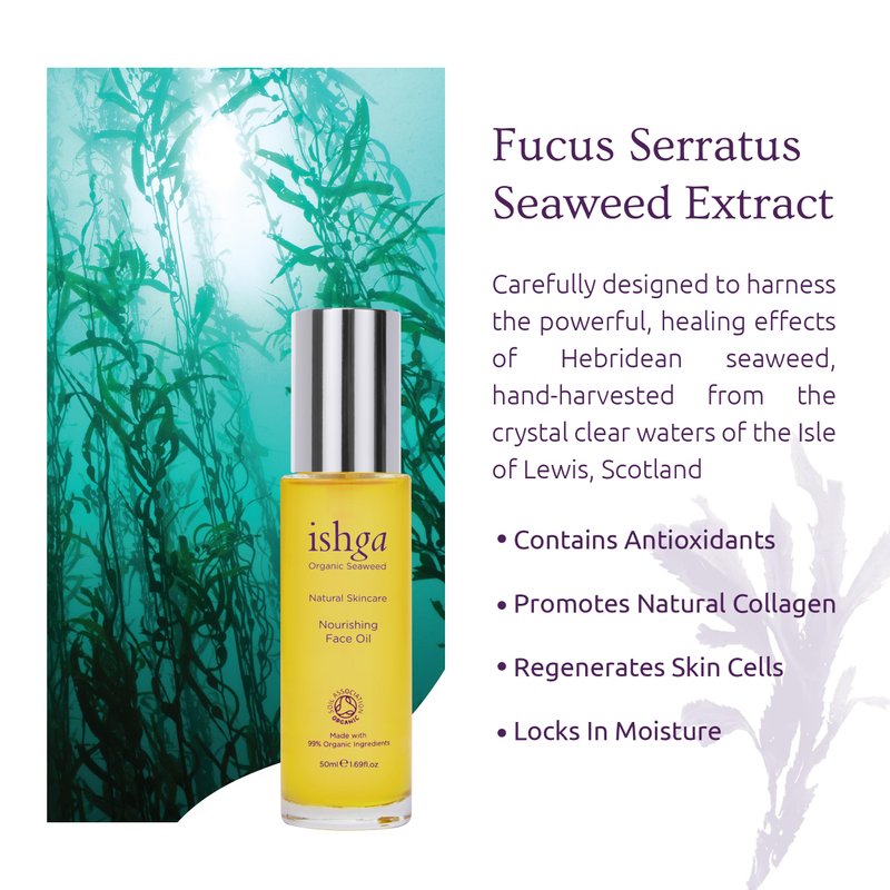 Ishga Organic Nourishing Face Oil | Scottish Seaweed, Jojoba, Almond Oil, Rose Geranium | Vegan, Cruelty-Free | 1.69fl oz (50ml)