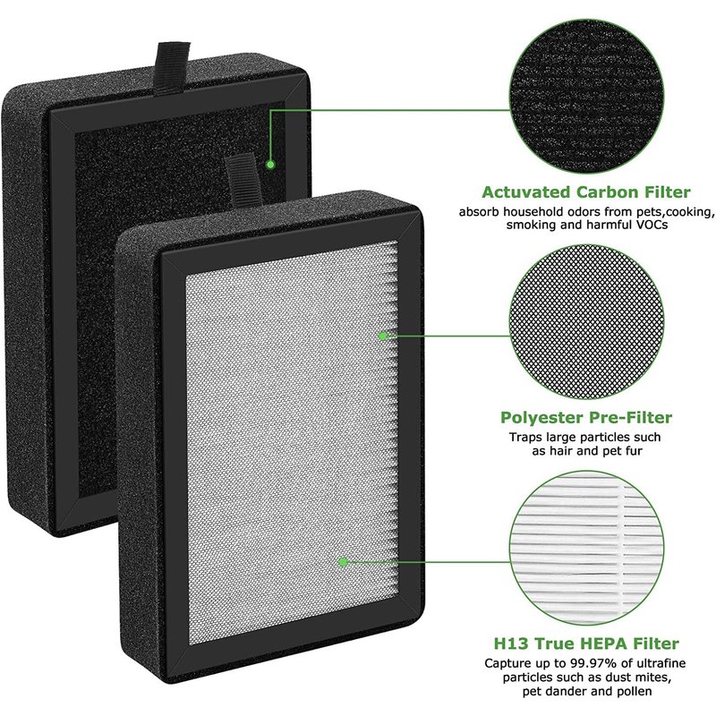 - 【3-Stage Filtration System】H13 True HEPA filter, pre-filter and activated carbon filter efficiently clean air and improve the environment. It is recommended to replace your filters for every 6 months.
