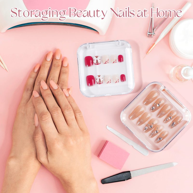- Nail Storage box size is 8.5 x 8.5cm / 3.3 x 3.3in. Perfect for packaging 1-2 set long/medium/short press on nails. Portable size, easy to put into your bag or purses.