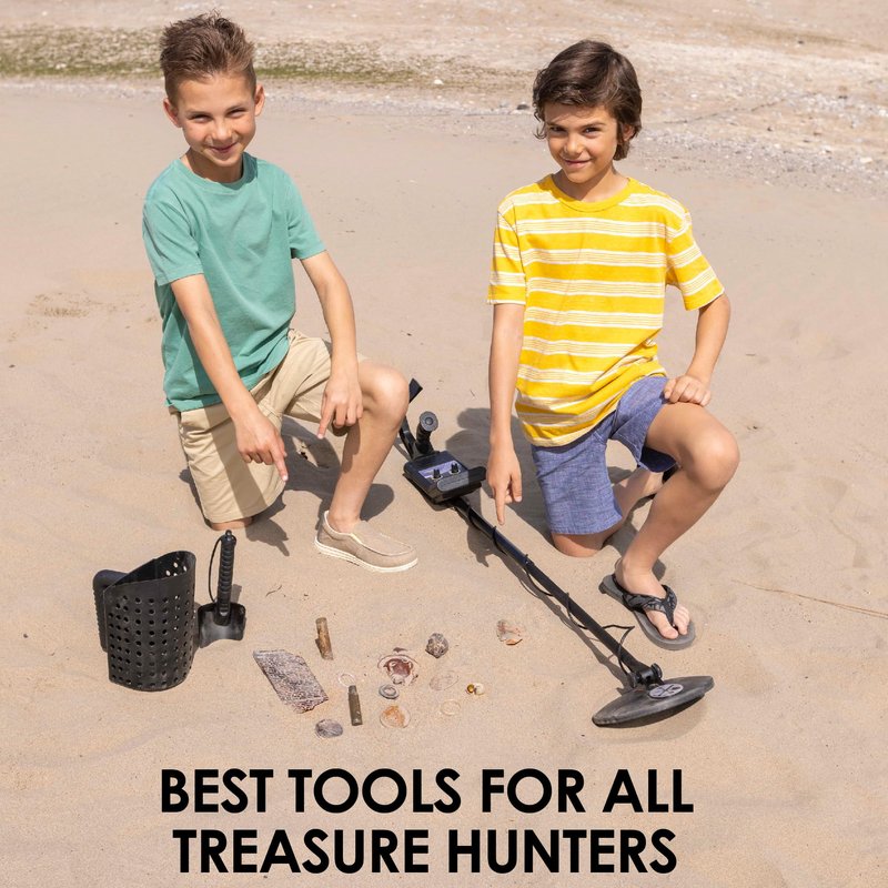 SET INCLUDES: 1 heavy-duty plastic sand scoop and trowel/shovel. Scoop is 7.75 inches tall and has a half-gallon capacity. Trowel is 11.5 inches long. GREAT FOR METAL DETECTING: The perfect accessory to your metal detecting arsenal. Quickly and easily sift through dirt, gravel, and sand to find historic artifacts, coins, jewelry, and other hidden treasures. TAKE TO THE BEACH: A must-have for kids and adults at the beach. Use your sand scoop and shovel to uncover shells, shark teeth, and other fossils lying beneath the sand. VERSATILE DIGGING TOOL: Our sand scoop and shovel are great for the outdoors, whether you love metal detecting, shelling at the beach, or digging for rocks in any terrain. MAKES A GREAT GIFT: For curious kids and adults alike.