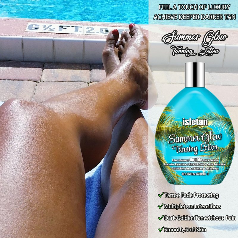 isletan Summer Glow Tanning Lotion Accelerator for Indoor Tanning Beds & Outdoor Sun with Bronzer to Get Dark Fast Tan,Sun Bed Tanning Lotion Dark with Tattoo Protecting Formula, DHA Free, 13.5oz