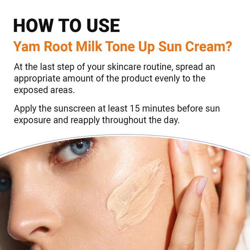 - Yam Root Milk Tone up sun cream: A Light beige tinted SPF based on mineral sunscreen filters, SPF50+ PA++++