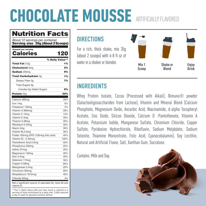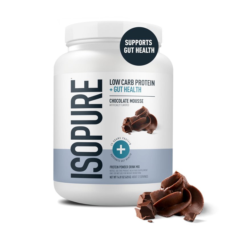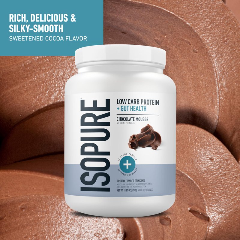 Isopure Protein + Gut Health & Immune Support Powder, Chocolate Mousse, 25g Whey Protein with Prebiotics & Vitamins, 12 Servings (Pack of 1)