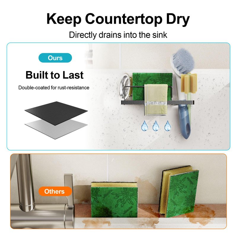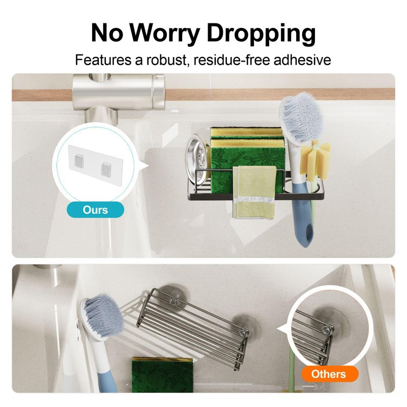 - Dependable Traceless Adhesive: Features a water-resistant and highly adhesive design, ensuring the sponge caddy stays securely onto your sink interior without concerns of detachment.