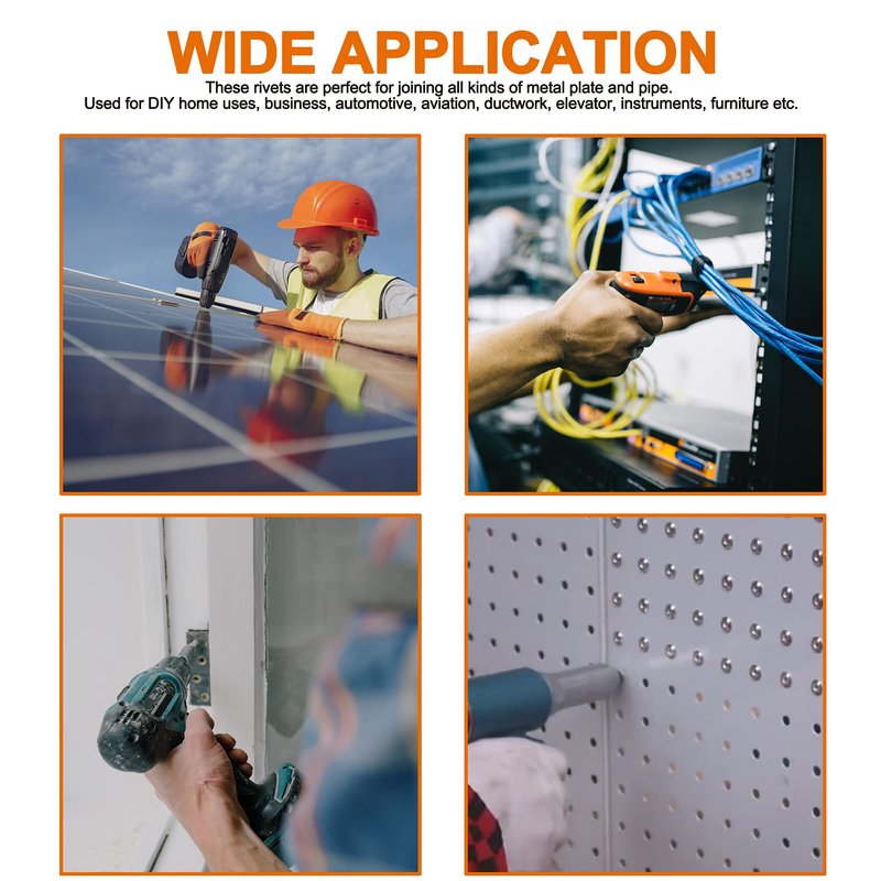 - ✅WIDE APPLICATION - Our rivets are very strong and very suitable for indoor and outdoor use. They are perfect for you when you need them most. After the riveting process is completed, it will not deform the surface. Good resistance to temperature changes.