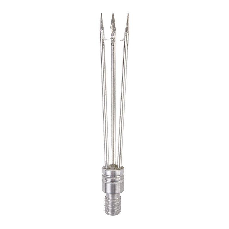 Constructed of corrosion-resistant stainless steel, this tip features three thick, barbed prongs in a triangle arrangement built to embed deep and secure. The tip measures 6 inches (15.2 cm) in total length, with prongs measuring 4.75 inches (12.1 cm).