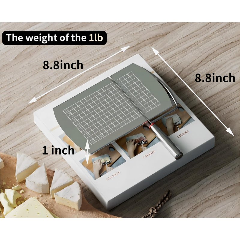 - 🍕 PRECISE & CLEAN CUT CHEESE SLICER: By lasering clear and precise grid scale lines on the board surface, which helps you to cut exactly according to the size you want from 1mm to cm, get rid of the guesswork about that the slice is too large or too small. (Board size: 4.92inch * 8.27inch).