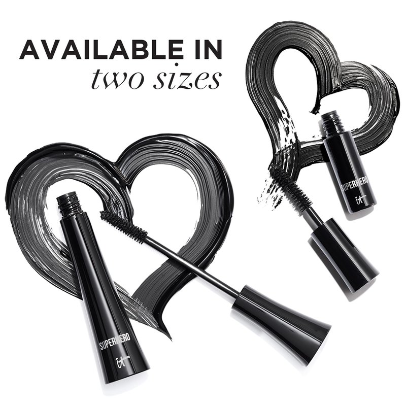IT Cosmetics Superhero Mascara, Super Black - Elastic Stretch Volumizing & Lengthening Mascara - Lifts, Separates & Conditions Lashes - With Collagen, Biotin & Peptides - 0.3 fl oz
