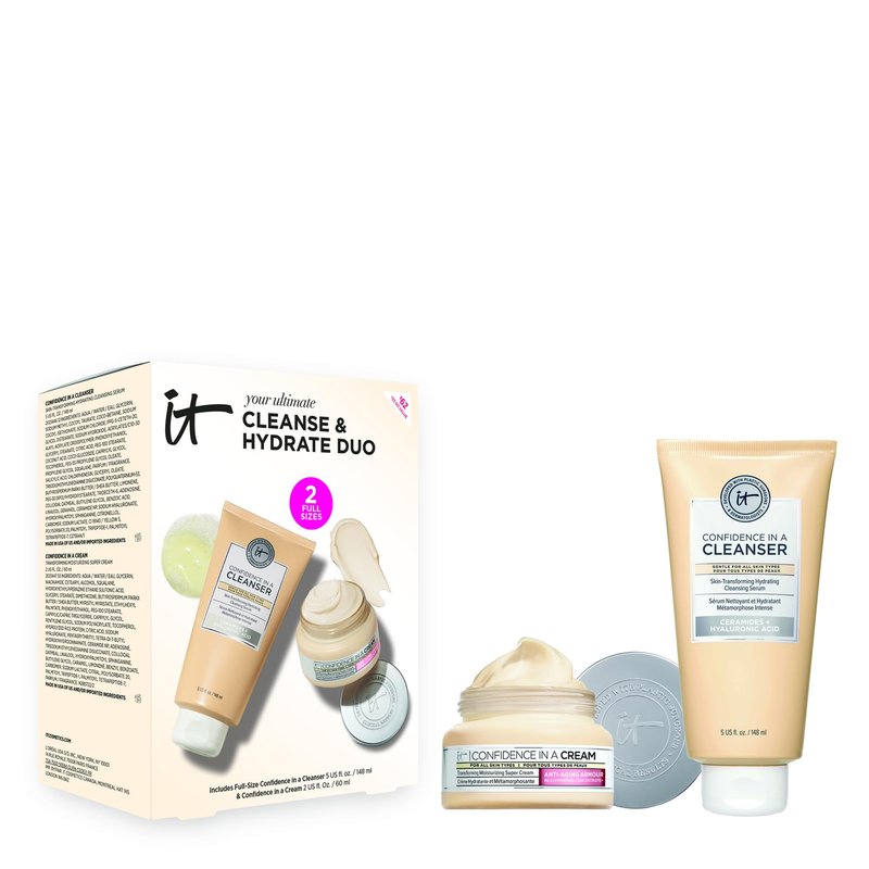 IT Cosmetics Your Ultimate Cleanse & Hydrate Duo Gift Set – 2-Piece Full Size Skincare Set with Facial Cleanser & Anti-Aging Hydrating Face Moisturizer – Vegan Kit