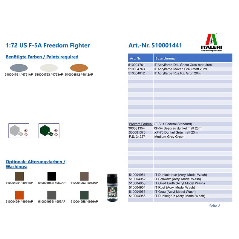 Italeri -1441 F-5A Freedom Fighter, 1:72 Scale, Model Kit, Plastic Model to Assemble, Modeling, Multicoloured, IT1441