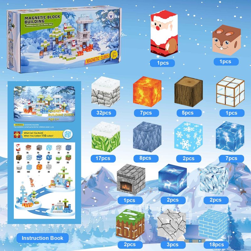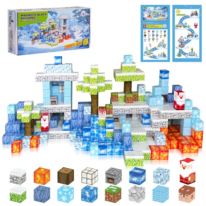 ITEFDTUTNE Magnetic Blocks - 110PCS Magnets Building Blocks World Set for Kids Ages 3-5 5-7 8-12, Magnetic Tiles Magnetic Block Game Preschool Toys for 3 4 5 6 Year Old Girls Boys Gifts (Ice World)