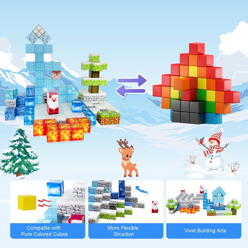 - A VARIETY of FUN MAGNETIC WORLDS: 110 magnetic cubes (16 designs) are included. Kids can choose their favourite dinosaurs, cars and doll toys to add to the fun magnetic worlds. Offers themed worlds ranging from simple to complex to get kids started on fun adventures (Note: Includes Quick Start Idea Book for kids of all ages)!