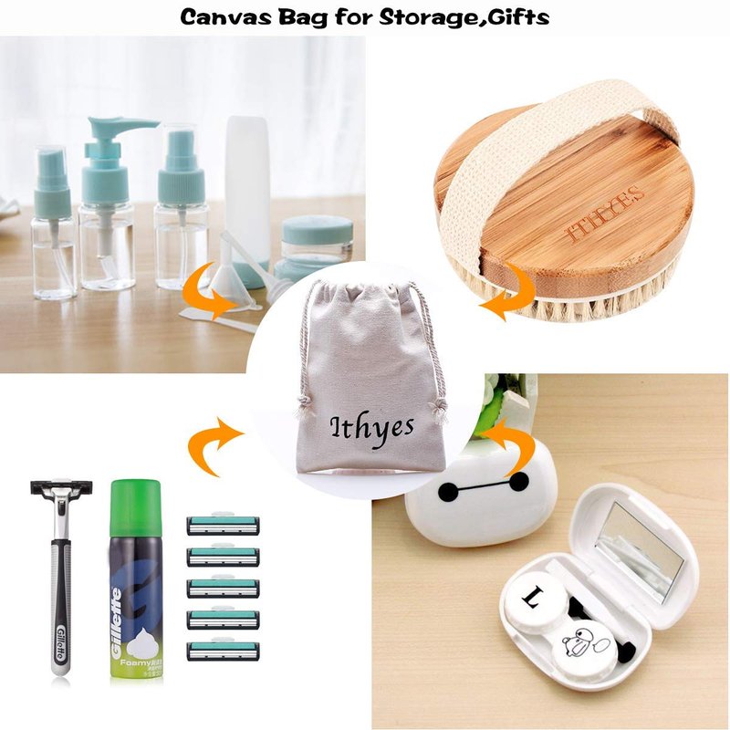 - For all Ithyes products , a qualified canvas bag is offered. Light weight, easy to open, great choice for home storage or travel convenience. You can also use it to store the dried body brush or other small items as a cute gift .