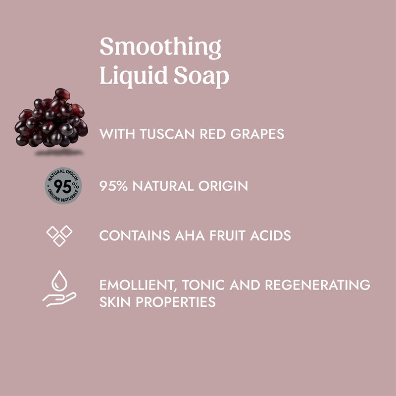 - WHAT IS IT: Smoothing Liquid Soap with Tuscan red grapes. Contains AHA fruit acid.