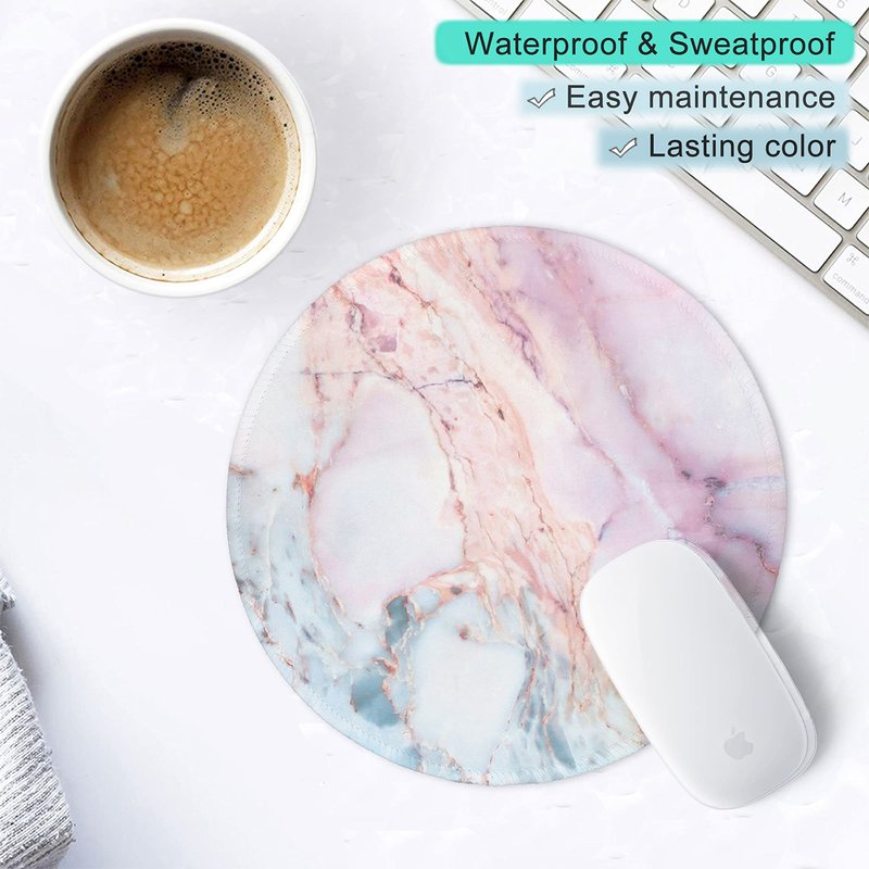 ITNRSIIET Marble Round Mouse Pad, Pink Marble Customized Premium-Textured Mouse Mat,Washable Mousepads with Lycra Cloth, Non-Slip Rubber Base Small Mousepad, 7.87×7.87×0.12 inches (Pink Marble)