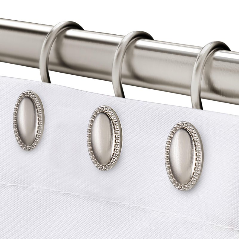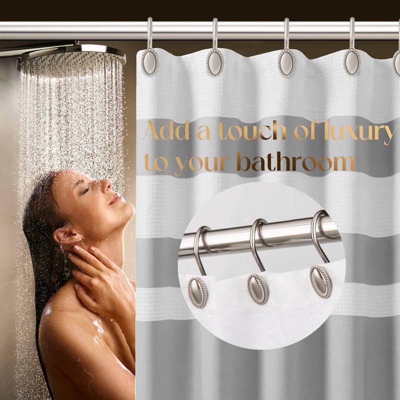 Introducing our high-quality decorative shower curtain hooks - the perfect addition to any bathroom! Crafted from premium zinc alloy, these heavy-duty hooks are built to last and feature an elegant oval shape that pairs perfectly with a variety of curtain styles. With their delicate beaded accents, these hooks add a touch of sophistication to any bathroom decor. And thanks to their sturdy construction, they can easily support both your shower curtain and liner without any worries. But that's not all - we've also coated these hooks with multiple layers of rust-resistant protection, ensuring they'll look great and function perfectly for years to come, even in damp bathroom environments. Upgrade your bathroom's style and functionality with our top-quality decorative shower curtain hooks.