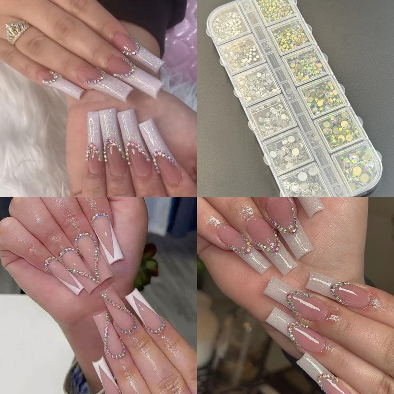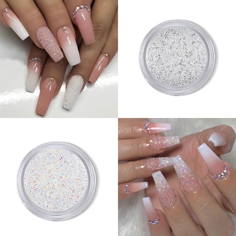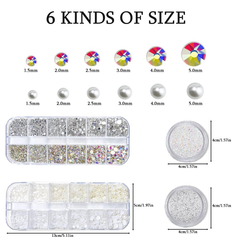 - Exquisite Design: The nail rhinestones are crafted in AB and white clear colors. The white and off white nail pearls are semi-circular in shape, giving a luxurious look. Rhinestones and pearls make your nails shine like stars.