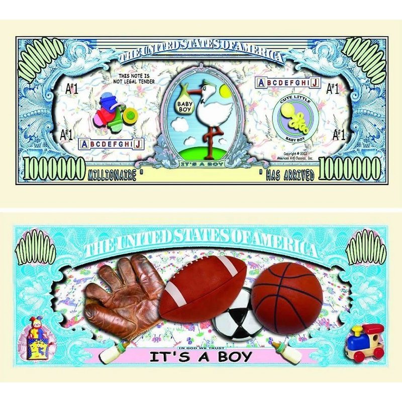 It's A Boy Million Dollar Baby Bill with Bonus “Thanks a Million” Gift Card Set and Clear Protector