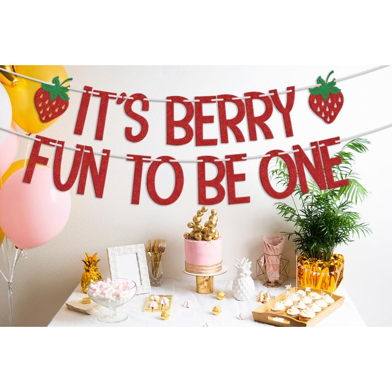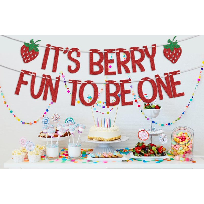 - It's Berry Fun to be One Banner:It's Berry Fun to be One slogan,very suitable for strawberry themed 1st birthday party.