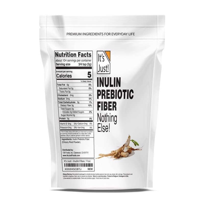 It's Just - Inulin Prebiotic Fiber, Chicory Root Powder, Non-GMO (11oz) Product of Belgium, Packaged in USA