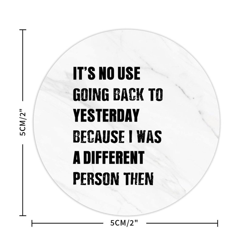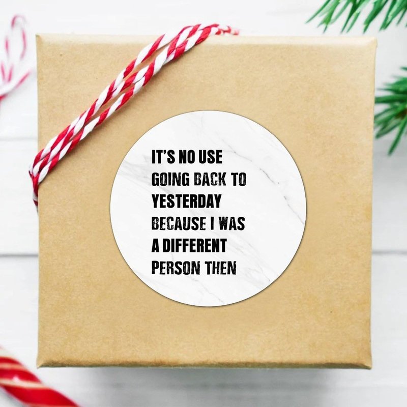 It's No Use Going Back to Yesterday Because I was A Different Person Then Round Label Stickers 100pcs Circle Decals for Water Bottle Luggages Laptop Computer Envelopes Seals Card Boxes 2in