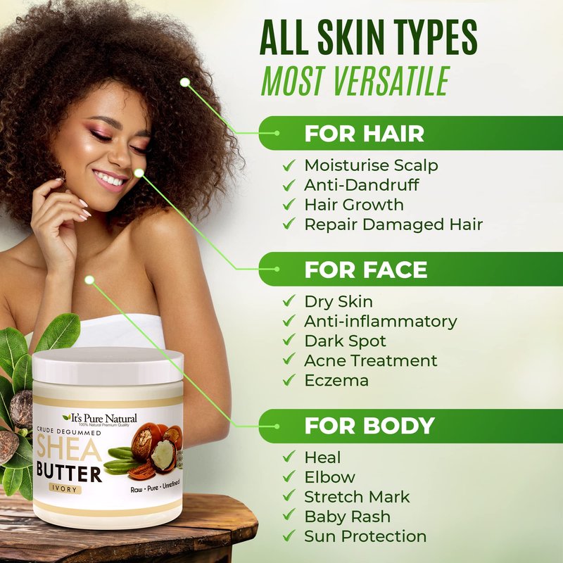 It's Pure Natural -World's First Crude Degummed African Ivory Shea Butter (8 oz) – 100% Pure & Natural Body Butter for Dry, Cracked Skin, Eczema, Stretch Marks & Anti-Aging