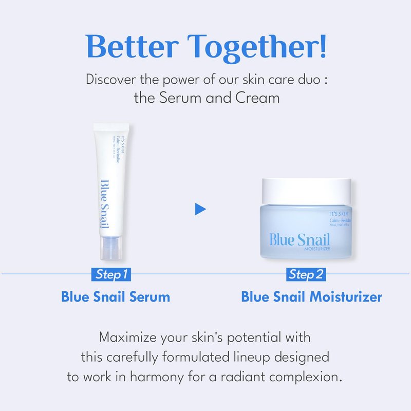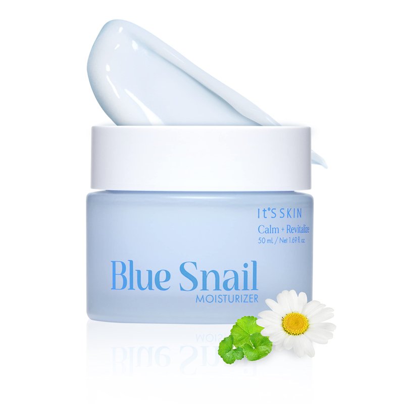 - POTENT INGREDIENTS. IT'S SKIN Blue Snail Facial Moisturizer is a Korean moisturizer, containing a powerful blend of Snail Mucin Essence and Centella Asiatica that will leave your skin looking and feeling amazing. It hydrates, soothes & balances all skin types for a soft velvety finish.
