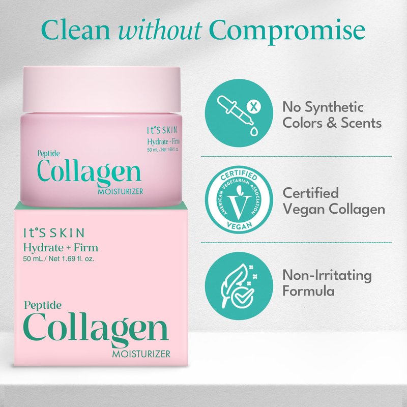 - VEGAN-FRIENDLY. The It's Skin Peptide Collagen Moisturizer is vegan-friendly, which means it contains no animal-derived ingredients. It ops a great choice for individuals who are looking for cruelty-free and planet-friendly skincare options.