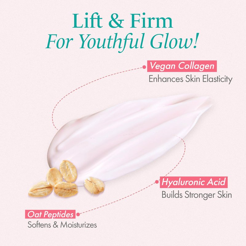 - BOOSTS SKIN ELASTICITY. This face moisturizer enhances skin elasticity and firmness with its vegan collagen and plant-based peptides ingredients that boost collagen and elastin production. It reduces fine lines and wrinkles for a youthful-looking complexion.