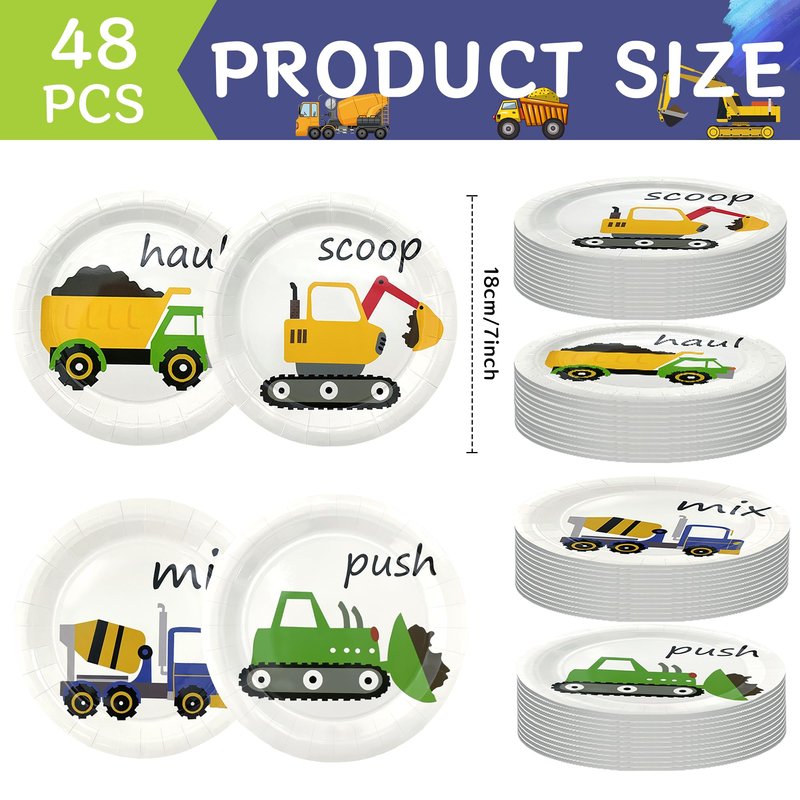 - Amazing Construction Party Decorations: Our 48PCS Construction Plates are perfect for your construction themed birthday party! With a total of 48 plates, each measuring 7 inches, these construction birthday party plates will meet all your needs for an exciting celebration.
