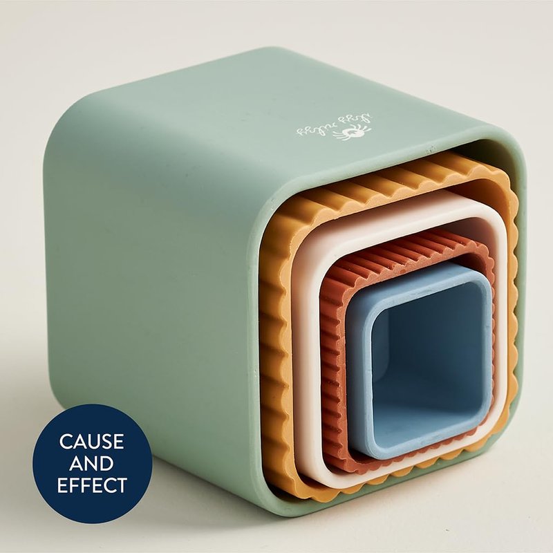 - The nesting and stacking design encourages motor development ad also teaches cause and effect