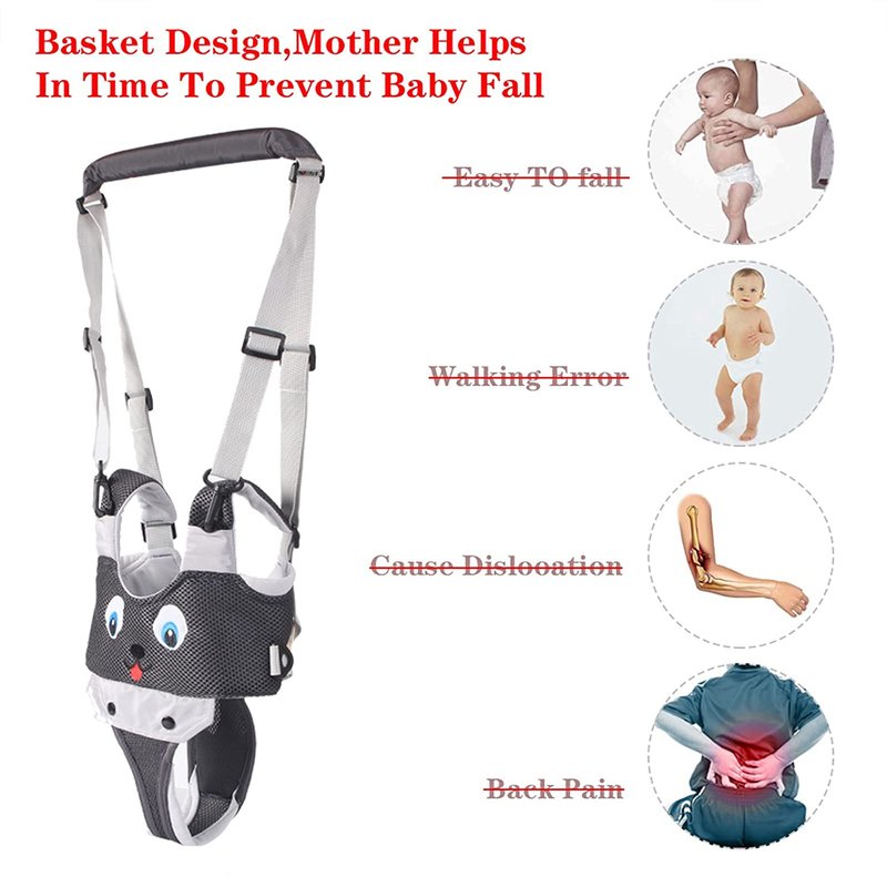 - Your Baby Walking Harness: Great for your baby learn to stand up and walk steadily during the toddler years (7-24 month). Its maximum load is about 15kg/33lb. Perfect walking assistant for baby's first step. Helping children get used to staying close with parents and prevent kids from falling down. The baby walker also helps to build up your babies confidence to walk by themselves. Let the baby move forward steadily and reduce parents back pain from bending over by the way