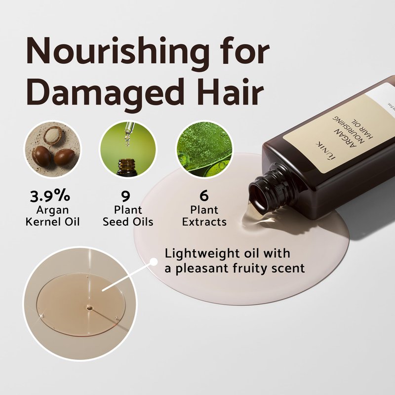IUNIK Argan 3.9% Hair Oil Serum Nourishing for Dry and Damaged Hair - Anti Frizz Lightweight Hair Treatment Deep Conditioner Mask, Paraben and Sulfate Free, Aceite de Argan Cabello 3.38 Fl Oz Korean