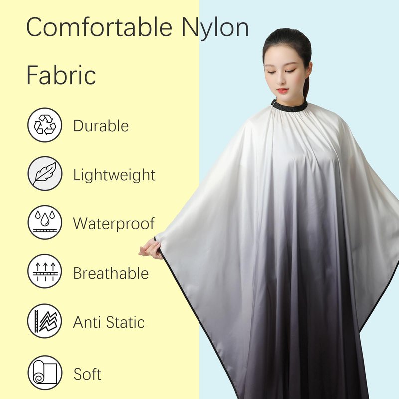 - 【Breathable & Lightweight Material】Our hair cape is comprised of high-quality nylon, quick-drying, which is better. In addition, these aprons are light and machine washable, providing happiness both for home-users and hairdressers