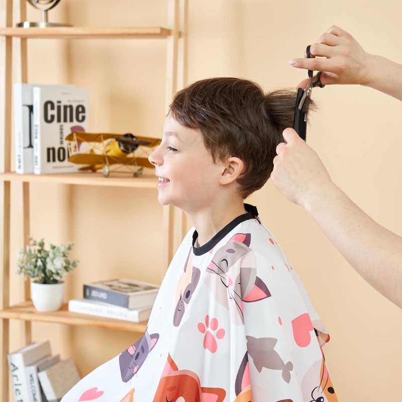 - ❤Suitable Size Design❤ Haircut cape is 4.26ft/130cm long, and 2.95ft/90cm wide. This size can completely cover the children’s front and back, so that the cut hair will not bother the child, making children enjoy a pleasant haircut time.