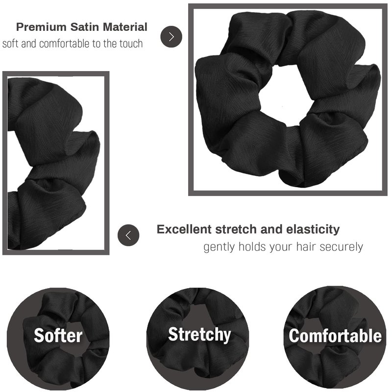 IVARYSS Black Scrunchies for Women, Premium Satin Softer than Silk, Elastic Bands Ponytail Holder Hair Accessories, 12 Pack