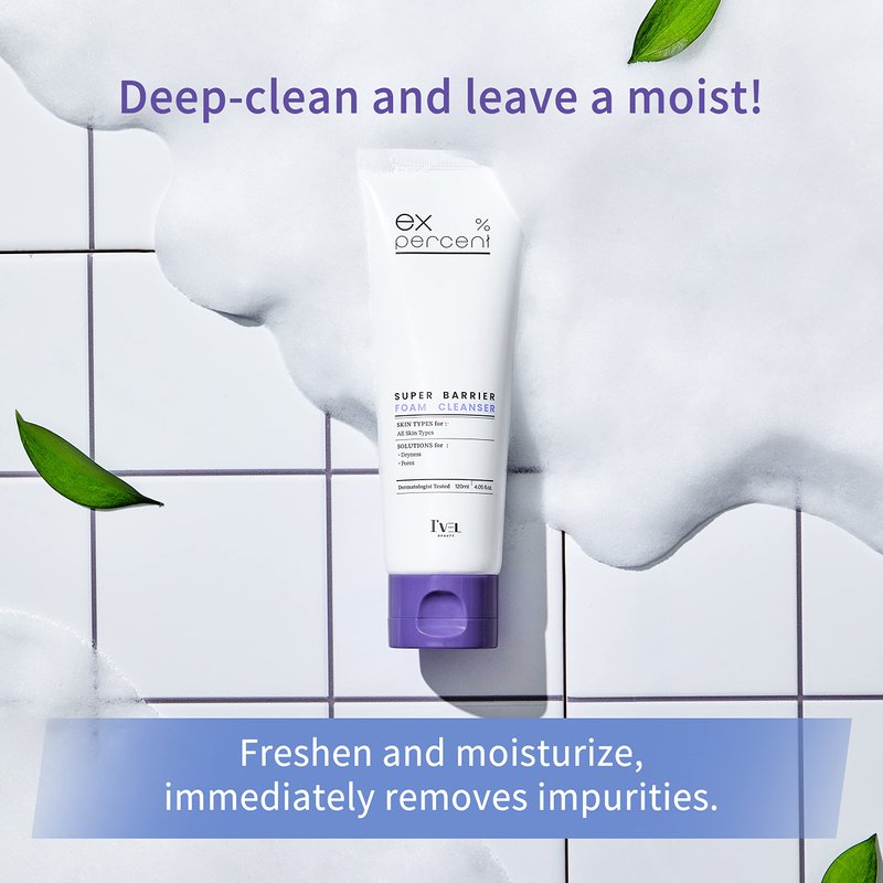 I'VEL Super Barrier Cleansing Foam Facial Cleanser, Refreshing Face Wash for All Skin Type, Makeup & Skin Clearing, Gently Cleanses Face Without Over Drying, 4.05 Fl Oz