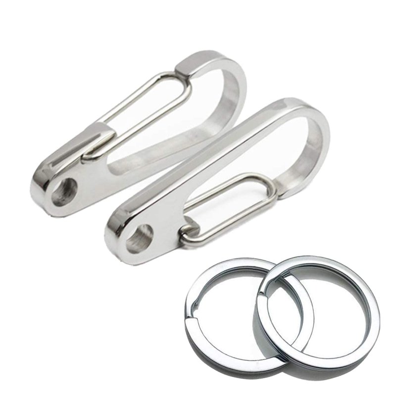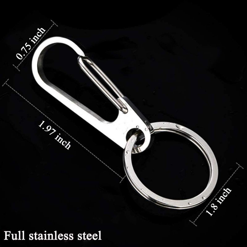 - What You Get - 2 pcs Stainless Steel Carabiner dimension: 50 mm (L), 19 mm (W); 2 pcs Stainless Steel Key Ring diameter: 30 mm.