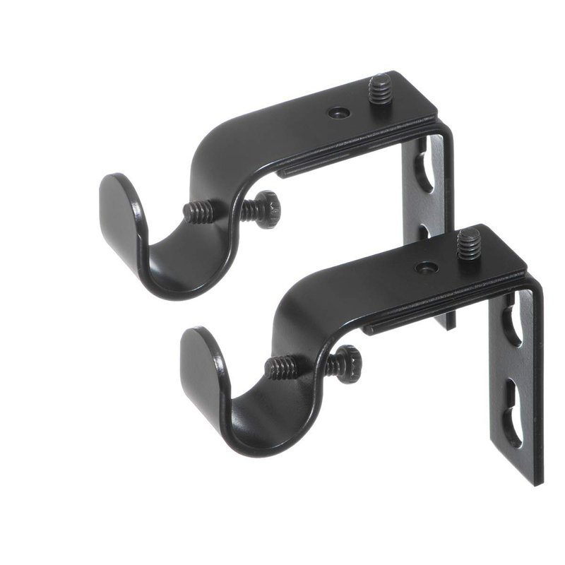 Ivilon Short Projection Brackets for Curtain Rods - for 1/2 or 5/8 Inch Rods. Set of 2 - Black
