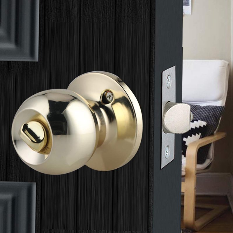 - ★Polished Brass Stainless Steel spherical lock applicable to door, gate, study, privacy, bedroom, bathroom, storeroom, kitchen, office, school.Fits both right handed and left handed doors.