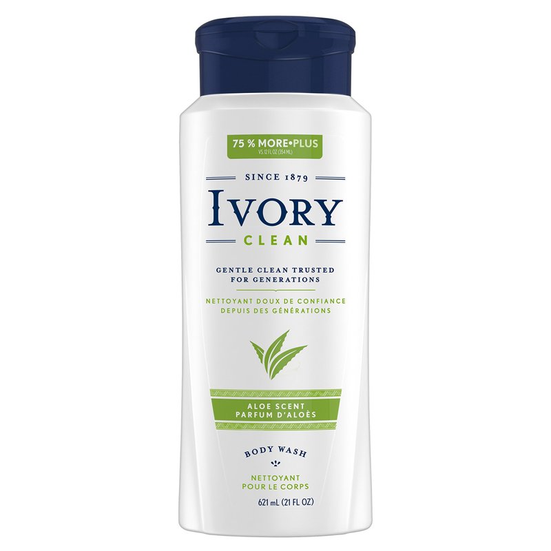 - Ivory Clean Aloe Body Wash leaves skin clean and hydrated (vs. regular soap)