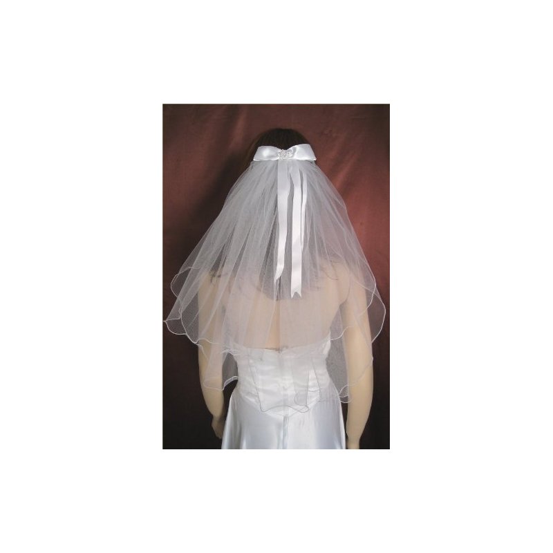 Ivory Flower Girl 2 Tier Wedding Communion Veil Satin Ribbon Bow Shoulder Length