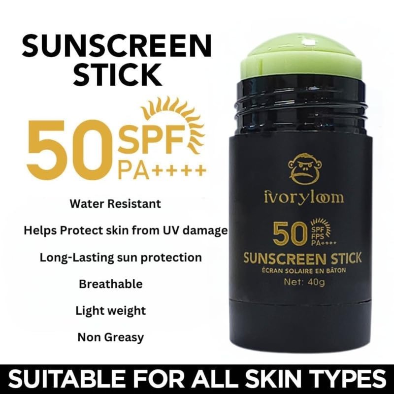 - Ivory Loom Sunscreen Stick SPF 50 creates a protective barrier with beeswax, wormwood, camellia, and vitamins A, C, and E. Water- and sweat-resistant for up to 180 minutes.