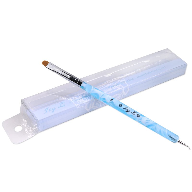 Ivy L 2- Way French Gel Acrylic Nail Art Kolinsky Brush with Dotting Tool for Professional Manicure Cuticle Clean up Nail Art Design (Size # 8, Blue Marble)