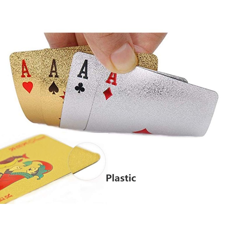 - 2.Washable and durable - Adopts superior waterproof and durable plastic pvc, no worry about smudges or getting wet any more. Moreover, no scratches or creases after used many times, these waterproof silver gold playing cards will accompany you for a longer time.