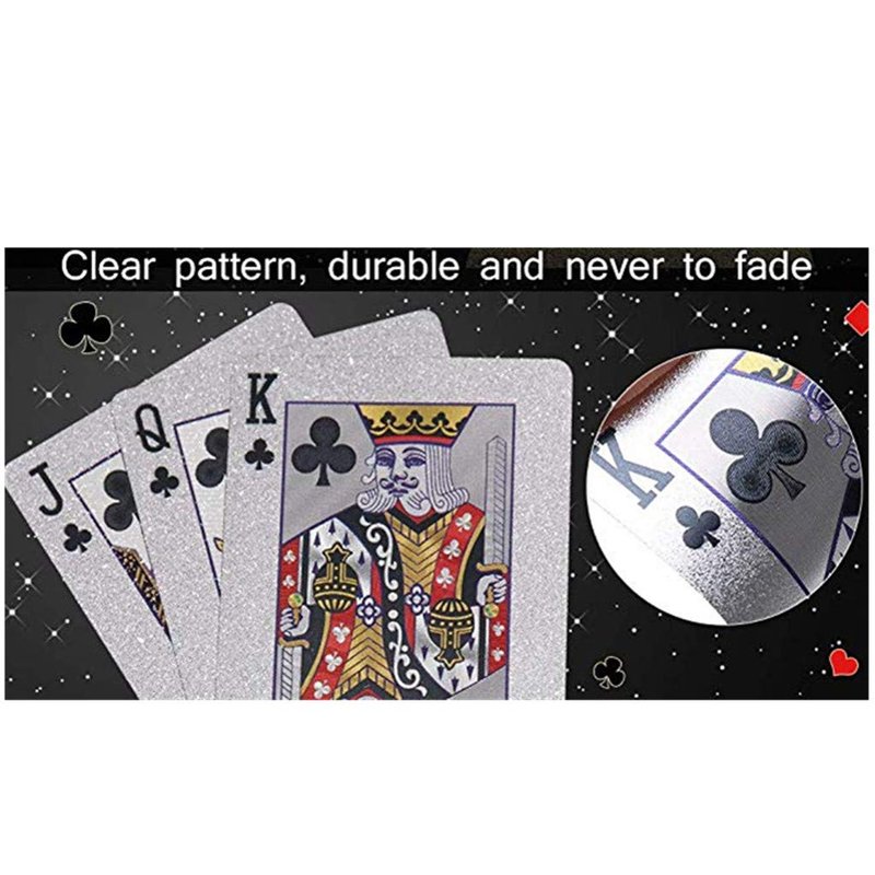 - 2.Washable and durable - Adopts superior waterproof and durable plastic pvc, no worry about smudges or getting wet any more. Moreover, no scratches or creases after used many times, these waterproof silver playing cards will accompany you for a longer time.