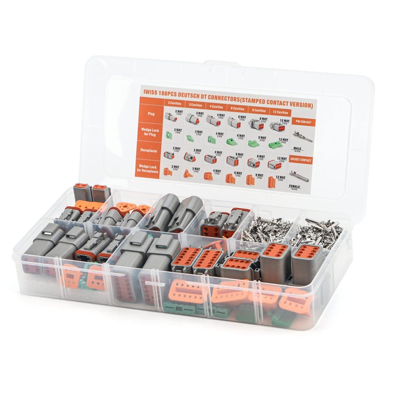 IWISS Deutsch DT Series Connector Assortment, Size 16 Stamped Contacts, Waterproof Automotive Electrical Connectors, 188 Pieces