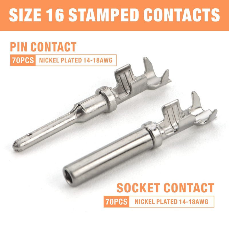 - Stamped-Formed Contacts: The Deutsch Size 16 Stamped-Formed Contacts 1060-16-0122(Pin) & 1062-16-0122-PS(Socket) are designed for use with 18-14 ga wire within a size 16 cavity.