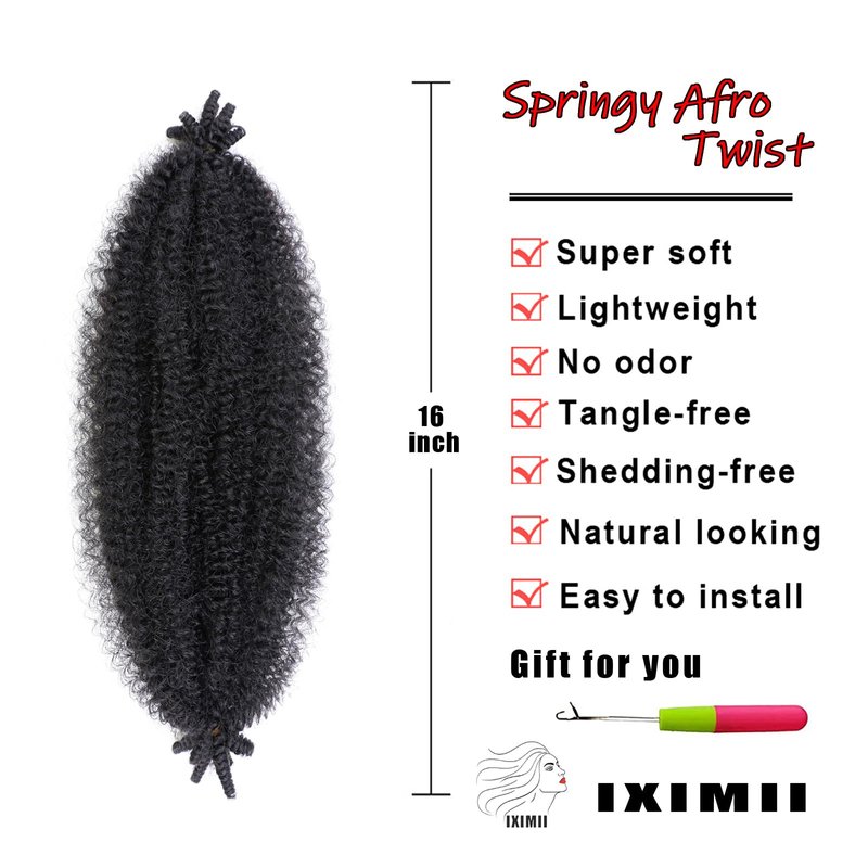 - 💞【PACKAGE】:1B# Springy afro twist hair,16 inch,3 bundles,8 strands/bundles.Usually 6-8 bundles can make a full head.