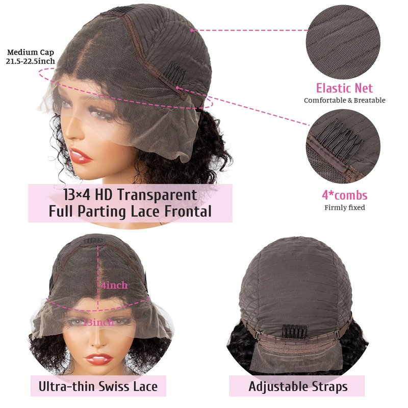 - [Upgrade Adjustable Cap] The curly wig has medium cap size(22 inch - 22.5 inch) , 4 combs and adjustable straps make it fit most people, and the breathable rose net make you more comfortable when you wear this curly human hair lace front wig.